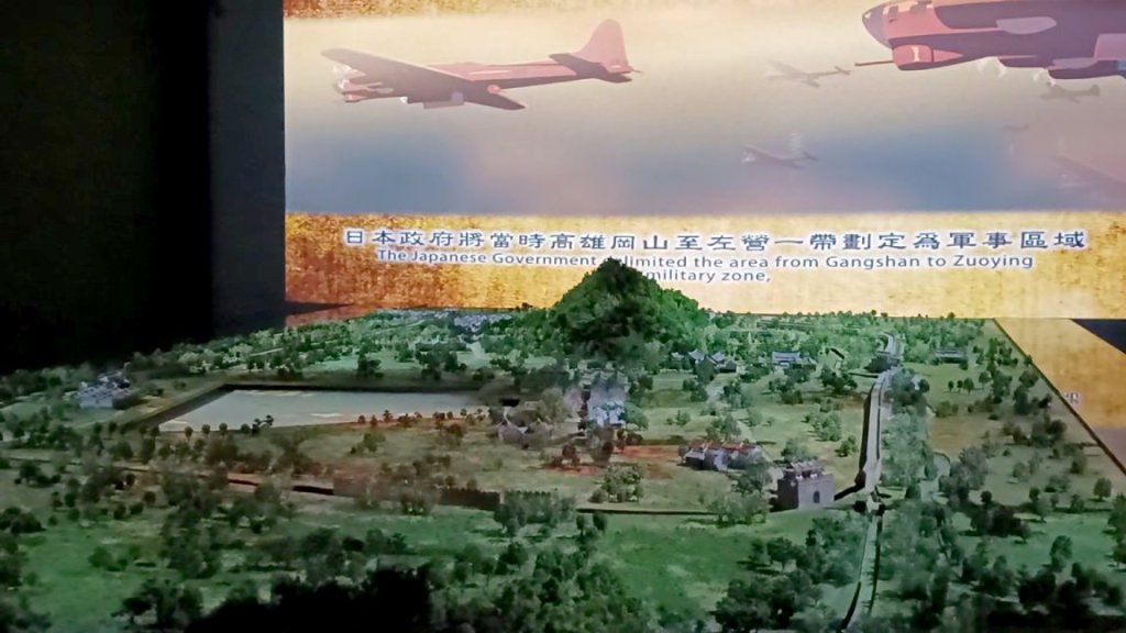 เมื่อพวกเราเดินมาถึงโซนโมเดลอย่างไม่รู้ตัวเพราะส่อง AR อยู่ เขาก็ปิดไฟ และฉายภาพยนต์แอนิเมชันทันที เป็นการเล่าประวัติศาสตร์ของเมืองเก่าริมภูเขาฟงซาน ตั้งแต่ช่วงก่อตั้ง จนผ่านสงครามมาหลายยุคหลายสมัย เกี่ยวพันทั้งกับญี่ปุ่นและจีนราชวงศ์ชิง มีการรื้อกำแพงเมืองแล้วสร้างใหม่บางครั้ง จนมาถึงยุคปัจจุบันทางการไต้หวันได้อนุรักษ์ไว้ และเกิดเป็นศูนย์ศึกษาประวัติศาสตร์แห่งนี้