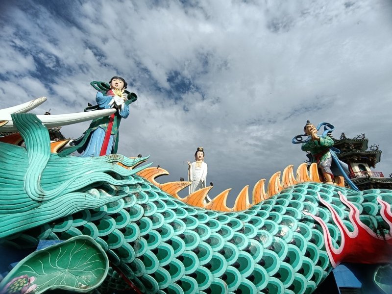 เราสามารถเดินเข้าไปชมภายในท้องของมังกรได้ ด้านในจะเป็นเรื่องราวเกี่ยวกับพระโพธิสัตว์กวนอิม