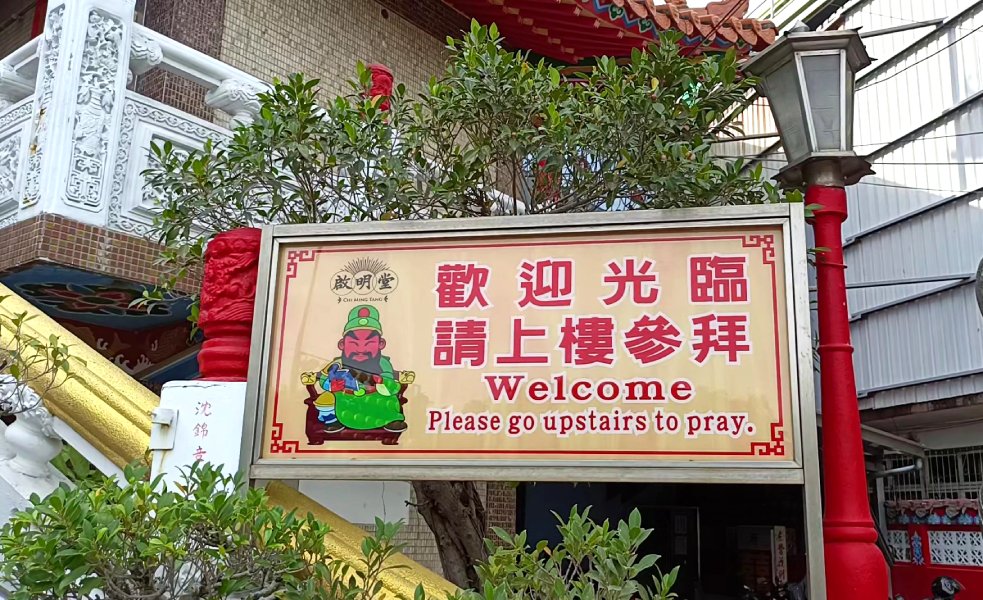เดินถัดมาไม่ไกลก็ถึง วัดชื่อหมิง (Chi Ming Tang) เป็นวัดที่ทั้ง มีพระโพธิสัตว์ และเทพเจ้าจีนให้บูชา (มีกวนอู และ ขงจื๊อ ด้วย) เป็นวิหาร 4 ชั้น ขนาดใหญ่